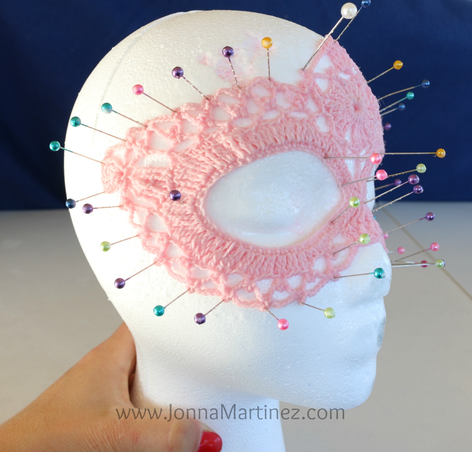 I then used some sewing pins and pinned out the mask on to a foam head.